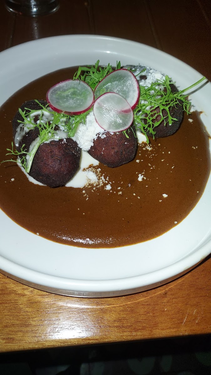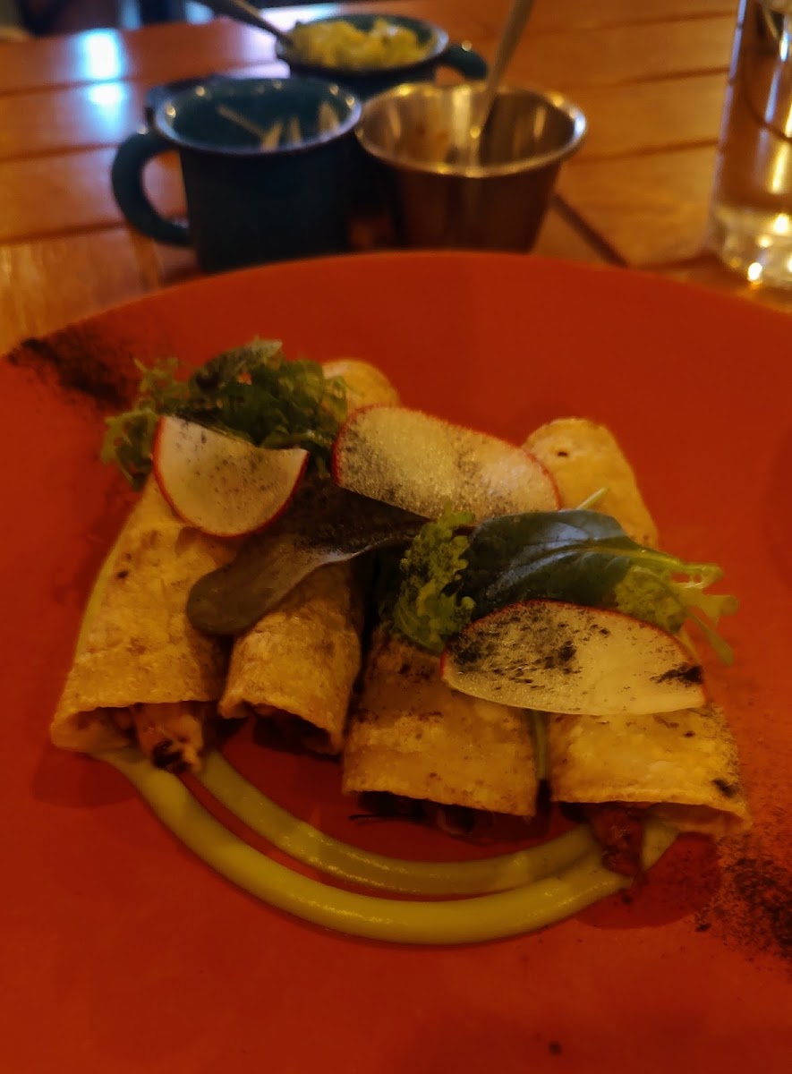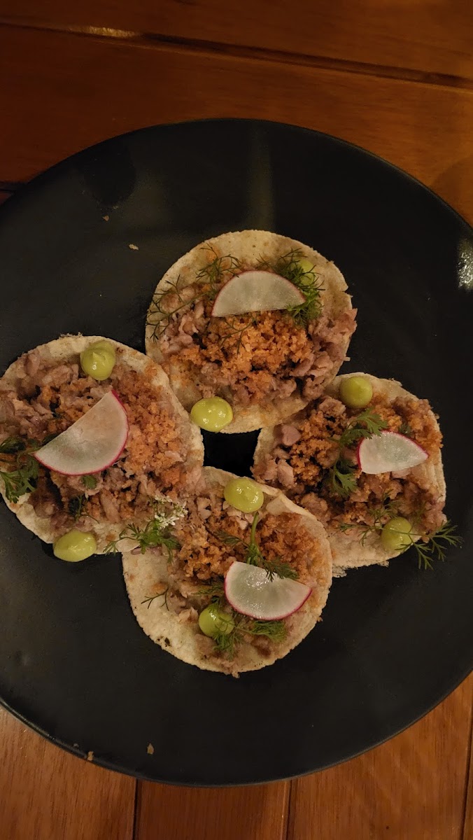 The Food was delicious! Had the vegetarian tacos and they were so delicious. The molotes were also delicious! Honestly everything was so fresh and good. And the Mushroom soups was so fresh and tasty. Never had anything like it but it was 10/10! But the star of the show was the dessert. We had the corn cake. Omg. It was like nothing I’ve ever tasted but it was so moist and fresh! Definitely would return. Great customer service and atmosphere!